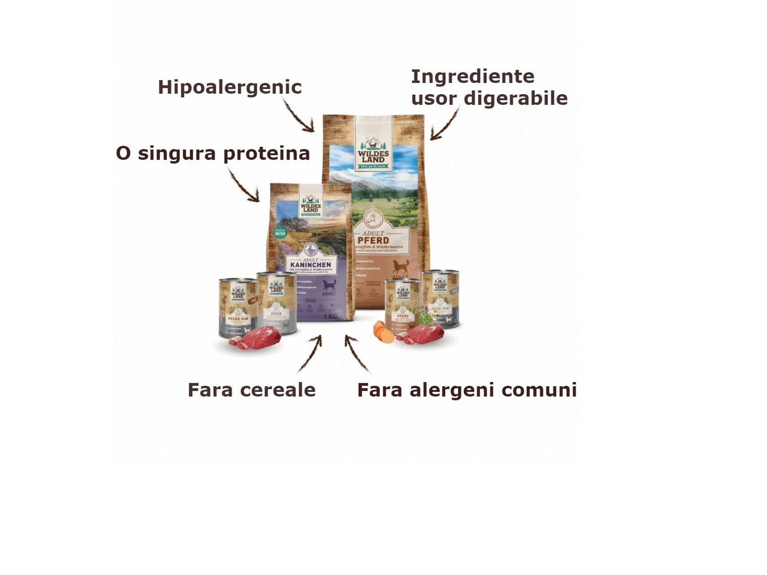 Hrana organică de la Wildes Land nu conţine cereale şi are certificare BIO, atestând provenienţa din agricultura organică.